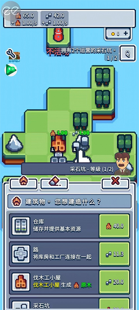 1、玩这个游戏想要升级就必须发展经济链,新手就从建造一个完整采石矿开始,并且还要不断的给采石坑升级才能更好的运营采石矿解锁之后的关卡。