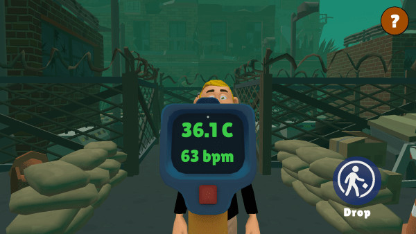 6、用温度仪对准避难者,屏幕会显示其体温与脉搏,若出现 > 45 摄氏度且 < 50bpm 的数值,即为病毒感染者,其他数值则为正常。