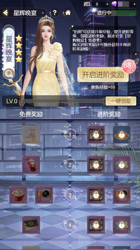 活动中开启【星辉晚宴】进阶奖励,可以获得更多【底片】助力三小姐兑换心仪的活动服饰,且包含大量道具奖励,性价比极高,一定要记得购买哦!