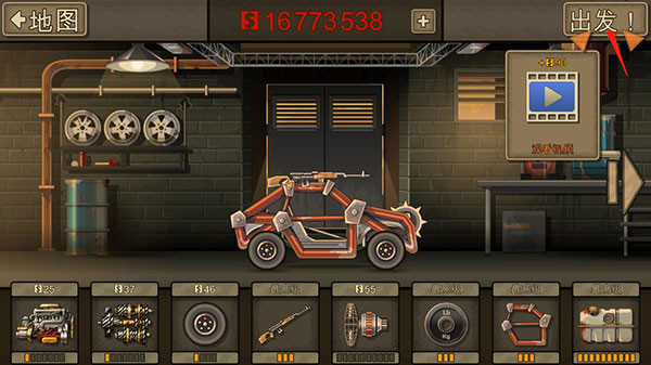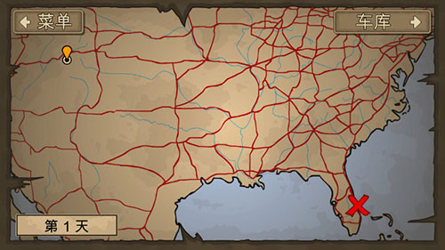7、直到燃料耗尽,这一天才结束,可回到车库购买装备下一日出发。