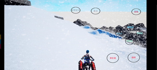 2、屏幕右方有不同的按钮都有中文注释,包括单轮骑、跳跃、往左、往右等等,点击便会做出相对应的动作。