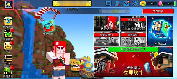 1、打开像素射击游戏首页左上角头像。