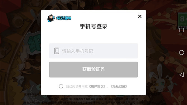 2、输入手机号,获取验证码,登录游戏。