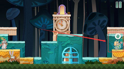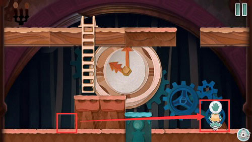 1、如下图所示移动方块,将扑克兵卡在屏幕另外一侧,然后拉下拉杆打开时钟塔的门。