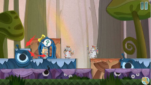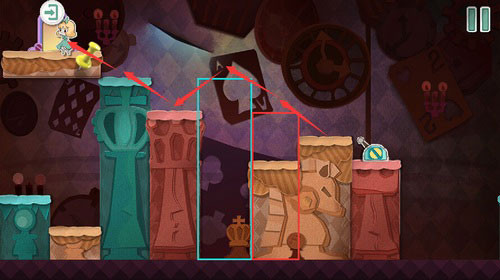 2、吃下变大蛋糕向前移动,可以将扑克兵赶走。