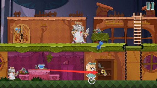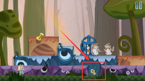 8、待巡逻兵走到右侧时将蓝色方块向左拖动可以将其隔离开,下来使用钥匙开门救出老鼠即可顺利过关。