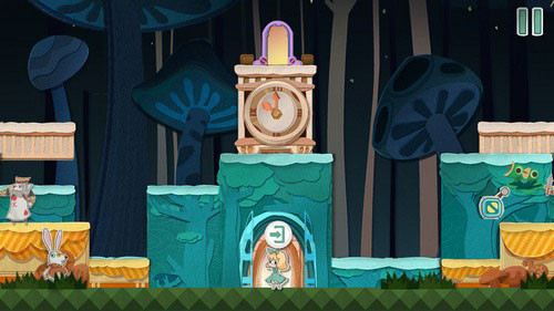 10、利用青色方块垫脚,进入时钟上方的门里即可顺利过关。