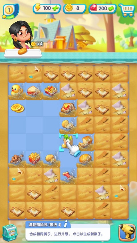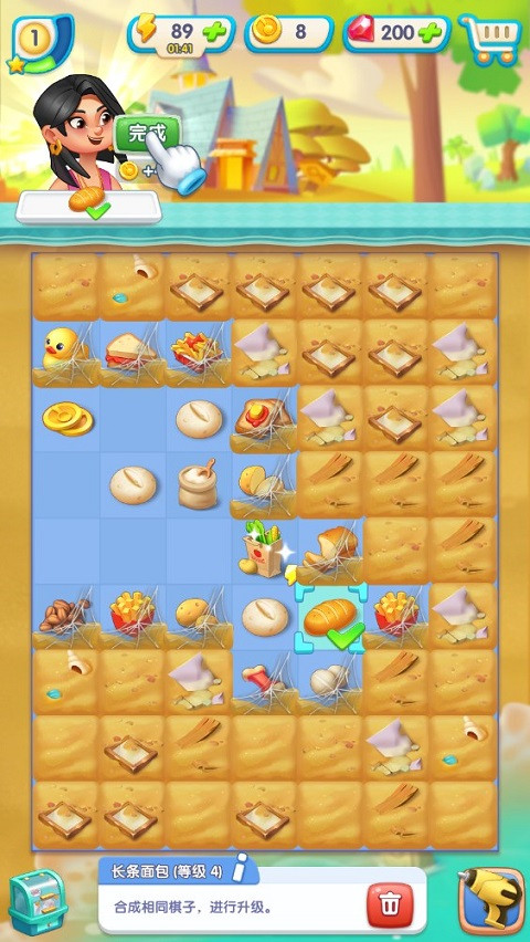 4、在棋盘的左上角有顾客需要的订单,通过合并探索,直至合并到顾客需要的订单,点击“完成”即可交付。