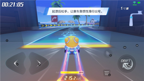 8、就进入弯道的时候,玩家可以左手控制左方向键,右边点击漂移键;
