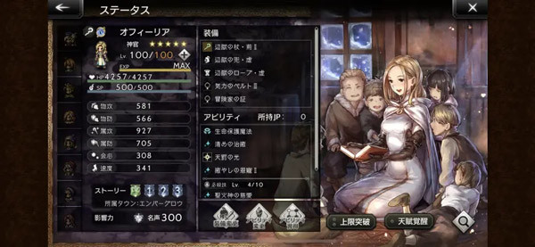 最重要的是欧菲有复活技能。这个技能既可以死者苏生也可以给队友套复活甲。必杀技能更绝,直接全体复活。欧菲自己也有自动复活的被动(1次)。在前期打boss的时候新手经常会突然暴毙,欧菲就充当救火队长,极大增加了容错率。我自己在后期打各种副本时,只要需要奶妈上场,就选欧菲,毕竟唯一奶。