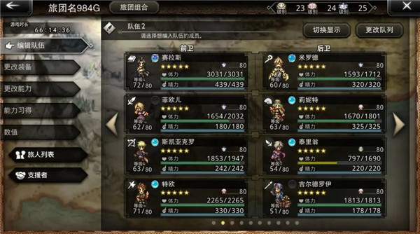 剑士、舞者、商人、学者、药师、盗贼、猎人、神官——八种职业构成了复杂的战斗体系。每种职业的技能与被动效果都可以形成丰富的组合策略。战斗中,最多八人组队的指令系统使每次行动都至关重要。地图指令系统进一步拓展策略深度,玩家可通过互动触发隐藏事件或优势战斗条件。
