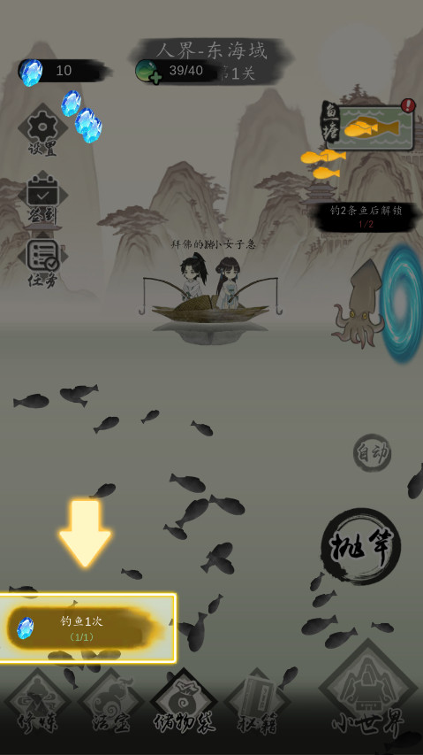 多次钓鱼积累经验,灵鱼数量越多,修为提升越快。