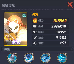 2、熟悉角色技能属性,理解单攻、群攻、控制与回复效果。