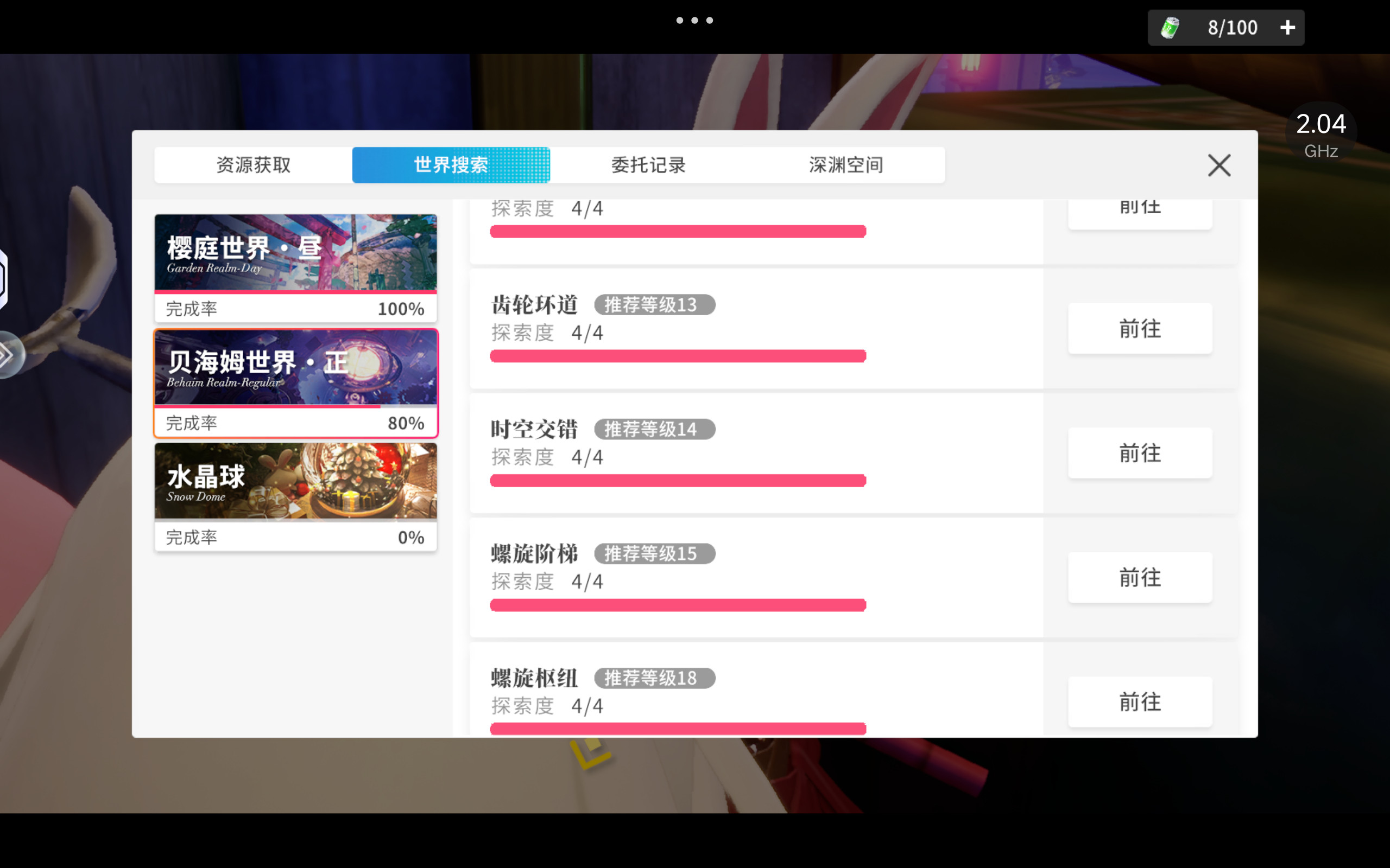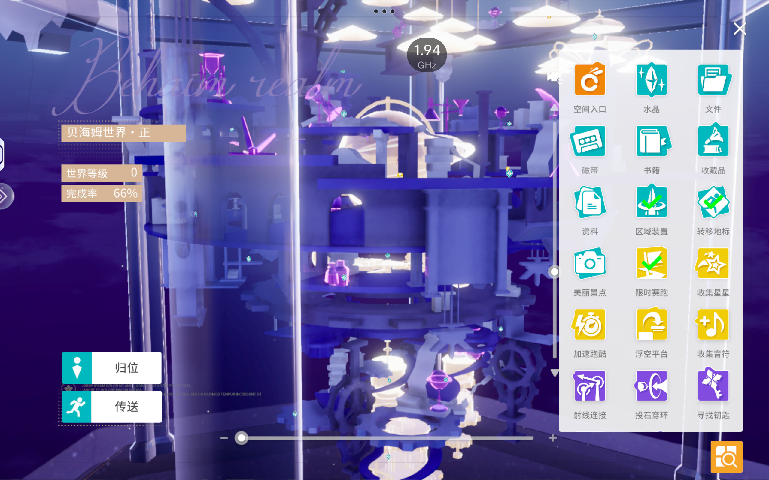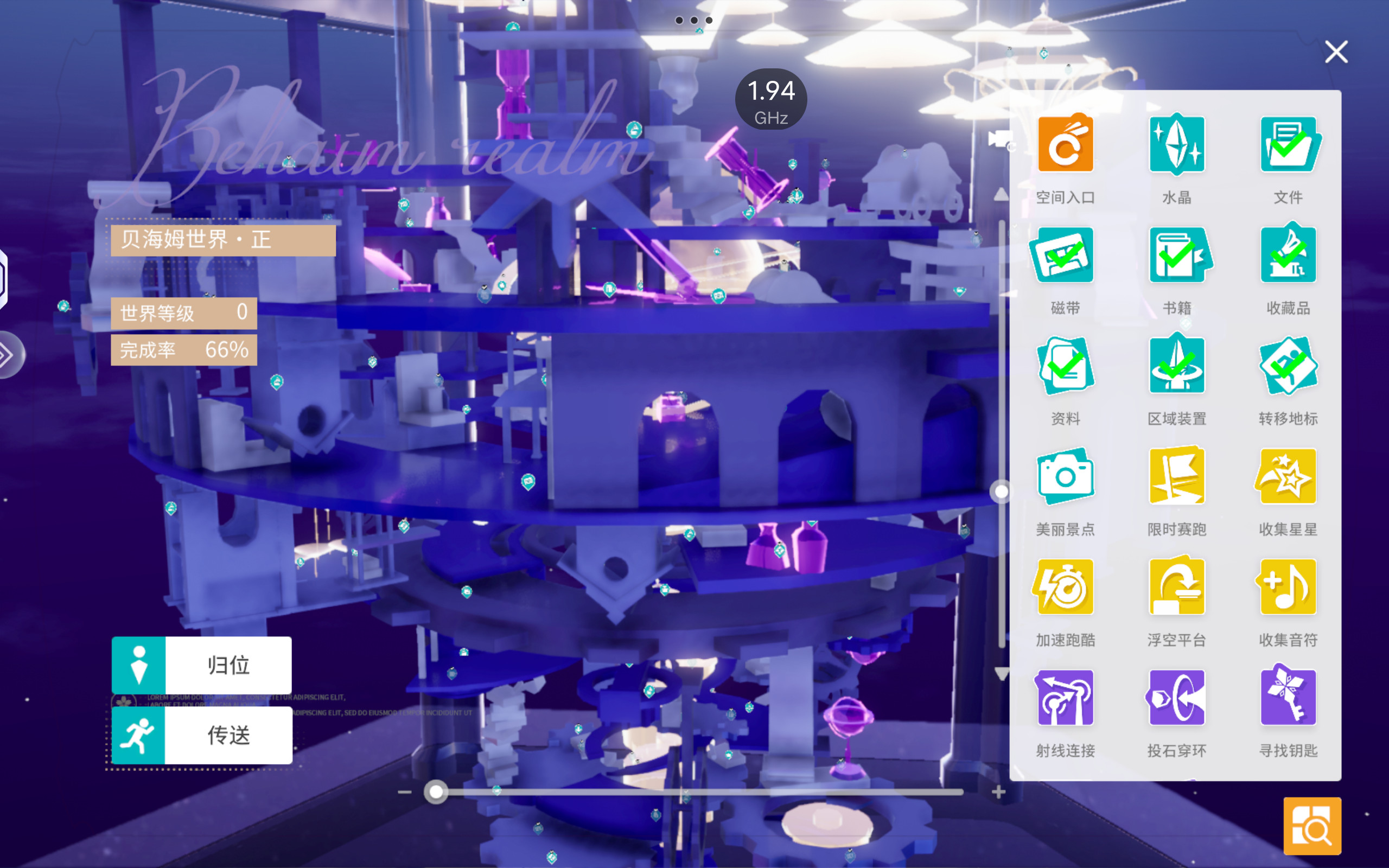 收集分为四个类型: 探索 收集 限时挑战 世界挑战