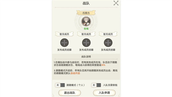 单独作战,指自己的队伍发起的进攻。自己最多可以安排3支队伍。队伍支持 [编队] 和 [解散]。