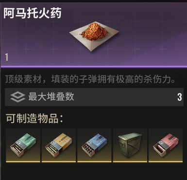 要想提高战力,除了拥有称手的武器和过人的技术,火力到位的子弹也是,不容忽视的重要一环。在打造子弹的过程中,阿马托火药不可或缺。拥有了它,各种型号的金弹满匣再也不是梦。