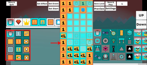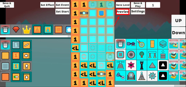 4、制作完之后可以点击箭头方向,这里可以浏览我们制作的关卡。