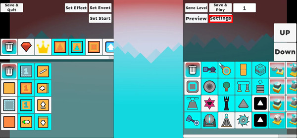 3、当你的关卡铺设完毕之后,点击右上角的settings,会弹出一个设置栏。