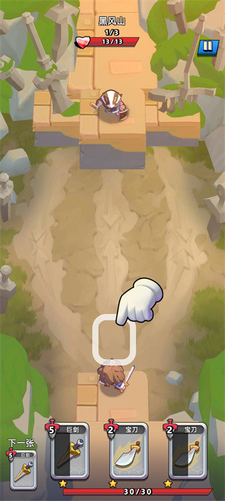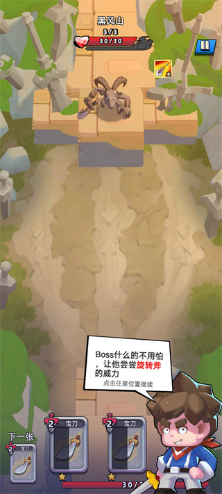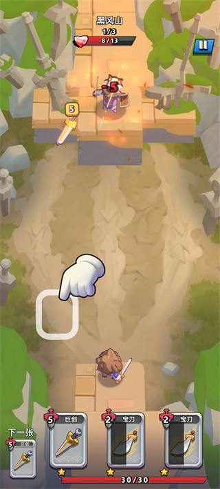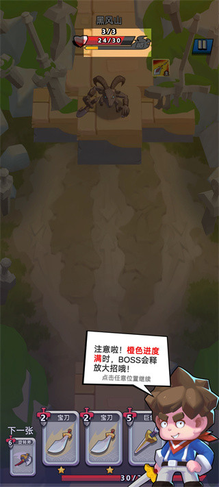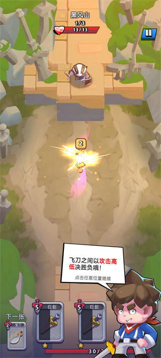 2、通过将下方的飞刀卡牌移动到前方即可攻击。
