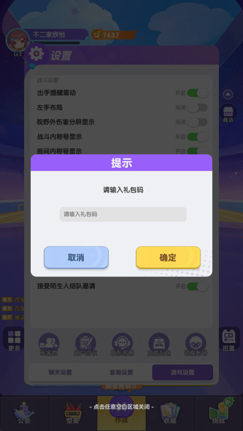 3、然后找到兑换礼包,在兑换框输入礼包码确定即可。