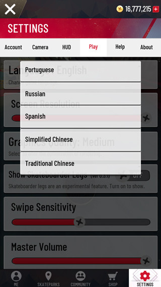 前往me界面可使用金币或条件解锁更多滑板类型。