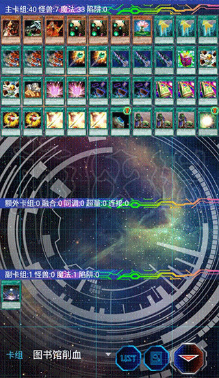 图书馆卡组大同小异,基本就是依靠魔法卡无脑抽抽抽,把卡组抽干,用光之结界让世界获正位效果。用非常食吃掉己方全部魔陷,以便结束阶段,满足纳祭之莲复活条件。