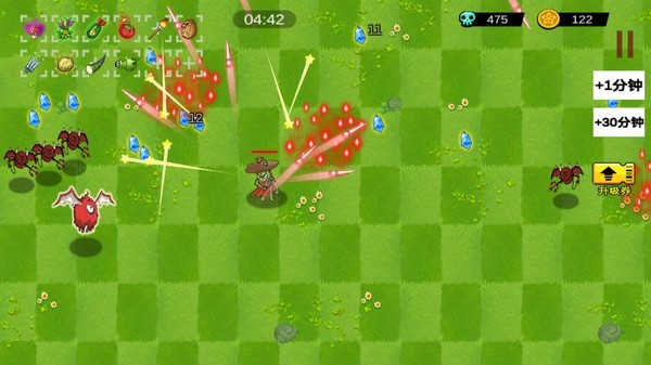 敌人不断增加的数量与速度迫使玩家持续移动与攻击,节奏变化极快。后期几乎是一场无法喘息的割草盛宴。