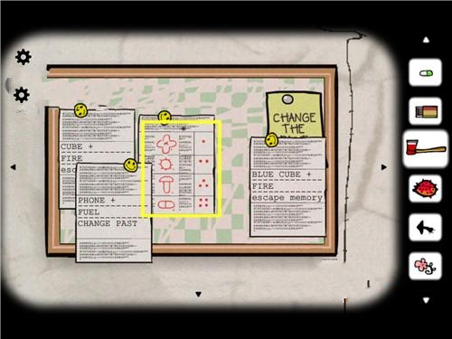 在厨房里,她发现了鸟食、锅、木材和一个固蛋器。壁炉旁边有蜡烛、相框和一个上锁的柜子,收音机不断发出杂音。告示板上有一条提示:“可以吃哈维的蛋来换取方块。”女主拼凑好照片碎片,点燃了壁炉里的木材,蜡烛可选择点燃与否。她将鸟食喂给哈维,它下了一个蛋。煮熟蛋后轻轻敲开,突然飞出一只黑色蛾子,蛋里隐藏着一个黑色方块。