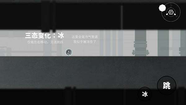 除此之外,在第二关中会出现水的第二种形态——冰,玩家需要注意的是冰,和水的操作方法不同,在第二关中冰仅能左右移动,无法跳跃