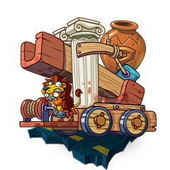 一辆来自古罗马的攻城车,攻城车僵尸向它的视野内最近的植物发射一个爆炸的花瓶。
