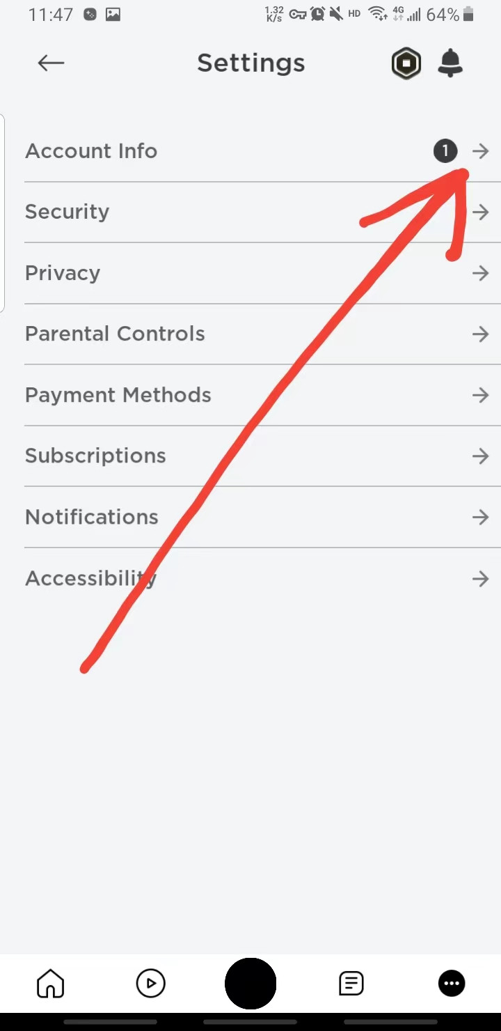 3、点击进入设置界面点击第一个account info(账户信息)右边的箭头
