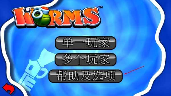 1、启动游戏后进入主界面,找到并点击“帮助及选项”按钮;