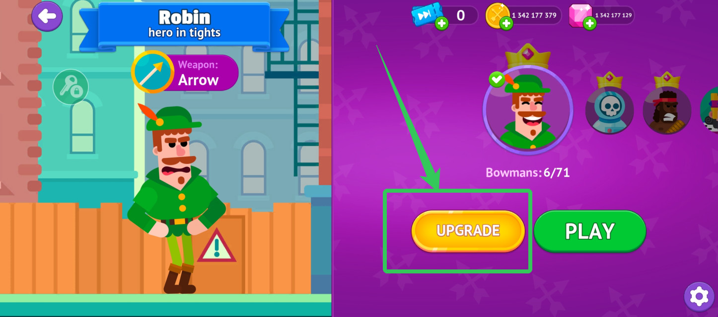 2、当角色下方出现了【UPGRADE】这个选项时我们可以升级他,他的形象也会发生改变。