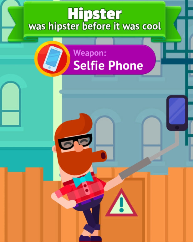 4、随着游戏的深入玩家可以逐渐解锁出多种角色,这些角色手中的武器可不是一成不变的,弓箭、匕首、标枪、注射器甚至是硫酸都有可能出现,暴力的斧头是小编最爱的一种。值得一提的是,游戏模式远不止双方互砍这一种,玩家还可以挑战射击对方头上的水果、天上飞动的鸟群等等,每一次模式的转换都是另一种“惨”况的出现,十分考验玩家的心理承受能力。
