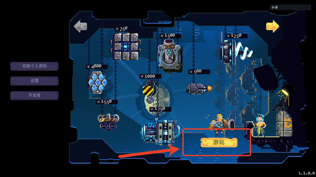 1、最上面的像白色太阳一样的资源是钱,属于肉鸽游戏中常见的可跨局积累、升级装备的资源,本游戏中唯一的获取途径是采矿或者挖石头,越难开采的矿脉开采后获得的钱越多。