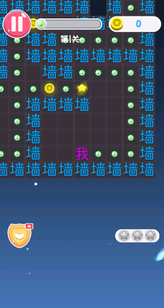 3、文字走位极为顺滑,即便面对密集障碍也能自然绕过,地图中散落的星星被轻松纳入路径中,通关后的金币与道具不断累积,使玩家的体验更具延续性。