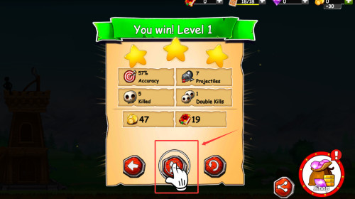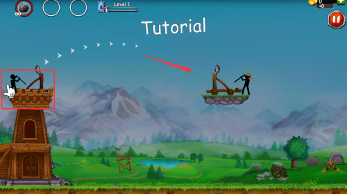 1、拉动投石机瞄准敌人,发射弹药完成攻击。