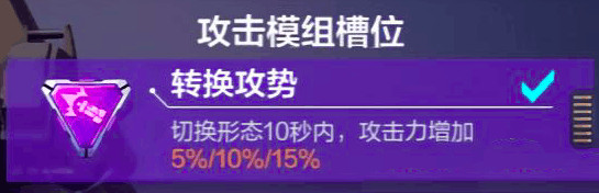 在切换形态的10秒内,提高机甲身的攻击力。该模组是末日核心必选之一,借助这个攻击增幅能够打出十分高额的伤害,给敌人开启10秒地狱模式。用好驾驶员的二技能,机甲耐久度减少时可以增加伤害,满级时减一半的血量可以有5%的攻击增幅,这样整体能获得20%的攻击力提升,近战时配合散弹炸脸能秒杀一切。