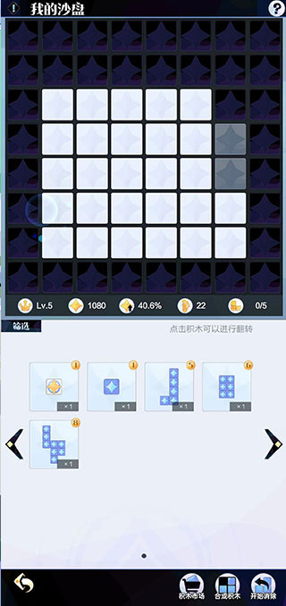 沙盘就是将你所有的练度转换为实际战斗力的手段,我们选择下面的积木(没有的话可以通过邮件,剧情等途径获得)拼满整个沙盘(拼不满就把最小积木全部合成),这样就可以扩大“战场”,然后点击右下角开始消除,发挥你的实力尽可能拿到更多星 星,战力就会蹭蹭往上涨啦。