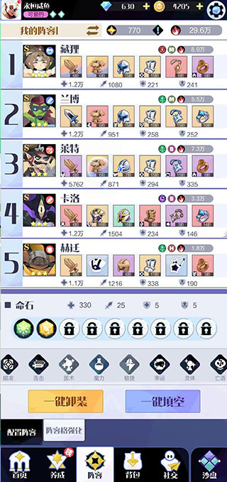 阵容我选择的是一坦克一战士一射手(也可以自己随意),挑选战力最高的伙伴出场即可,阵容格强化按平均拉满,这个可以提很多战力,千万不要忘记。