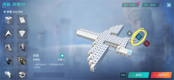 点击蓝色旋转按钮调整方块方向,便于组合机身。