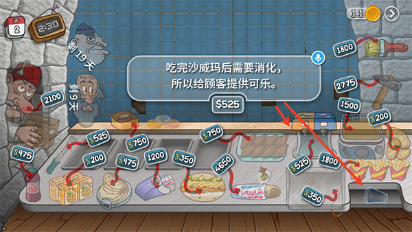 解锁可乐机(525金币)后,升级杯子实现自动接可乐,提升饮品收益。