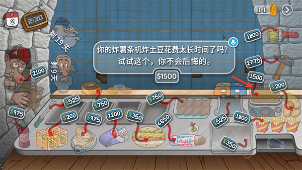 1、备料:点击左侧员工切土豆条(长按土豆),并将肉片切碎。