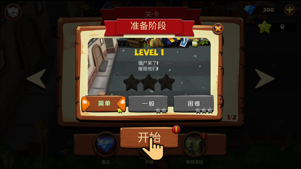1、打开植物横扫僵尸,点击开始游戏,选择游戏关卡;
