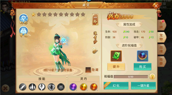 灵宠能提升战力,灵宠有不同变异等级,一变和四变战斗力相差大