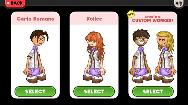 挑选喜欢的人物形象,每位角色拥有不同外观但玩法一致,准备营业。
