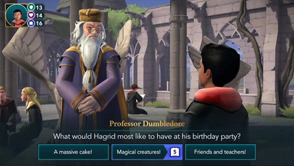1、以二年级学生视角体验游戏,完成邓布利多交付的海格生日派对任务并与同学互动。