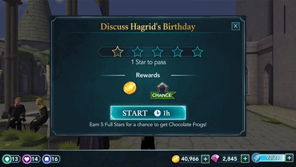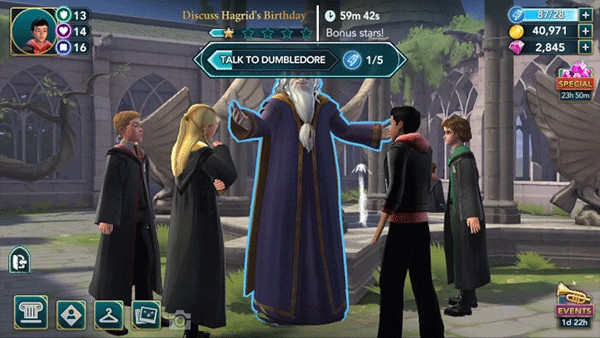 4、邀请胡奇夫人参加派对,通过课堂与魔咒学习完成任务,提升知识点和房屋点奖励。