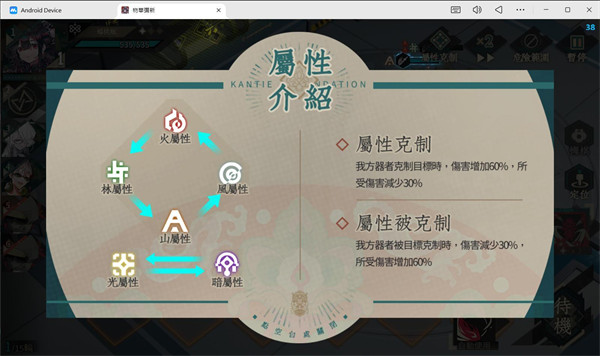 此为国际服特有系统 分为风、林、火、山、光、闇 六属性,属性相剋图如下