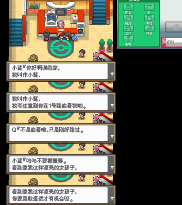 进入精灵中心,这边又遇到小蓝,调戏了一下我们,然后说下面的乔伊小姐怪怪的